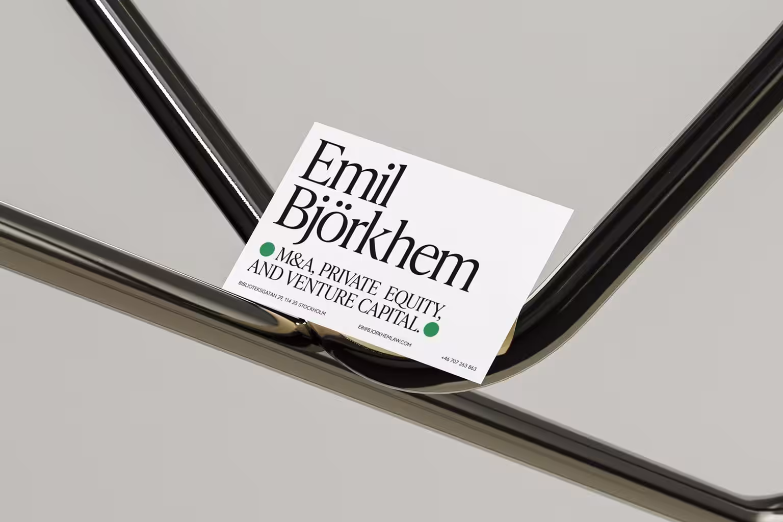Björkhem is a newly founded law firm in Stockholm, Sweden. Founded by Emil Björkhem they set off to help founders and entrepreneurs with strategic and legal advisory. Emil’s ambition was to match the visual identity with their offerings of innovative and tailor-made solutions in a way that feels dynamic and cohesive with a clear visual hierarchy. For him it was important to steer away from the meaningless imagery and bland typography that this industry is used to seeing.