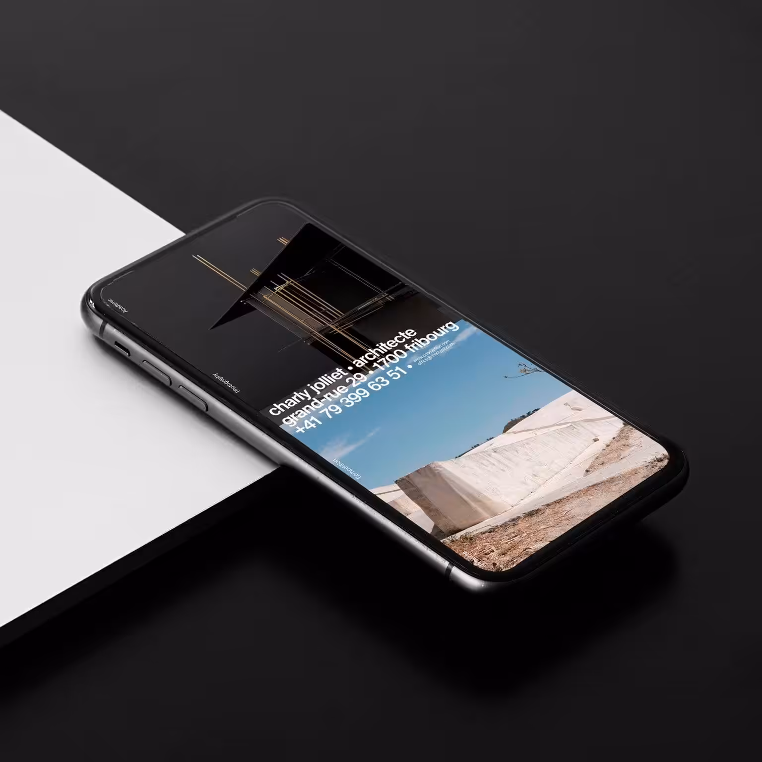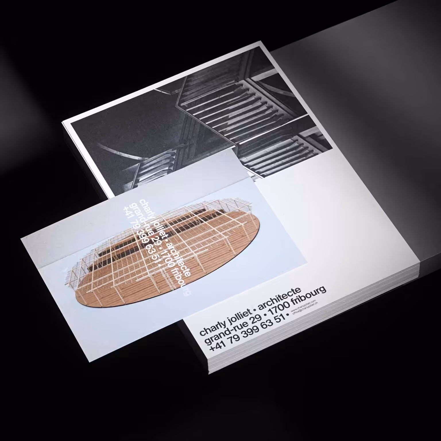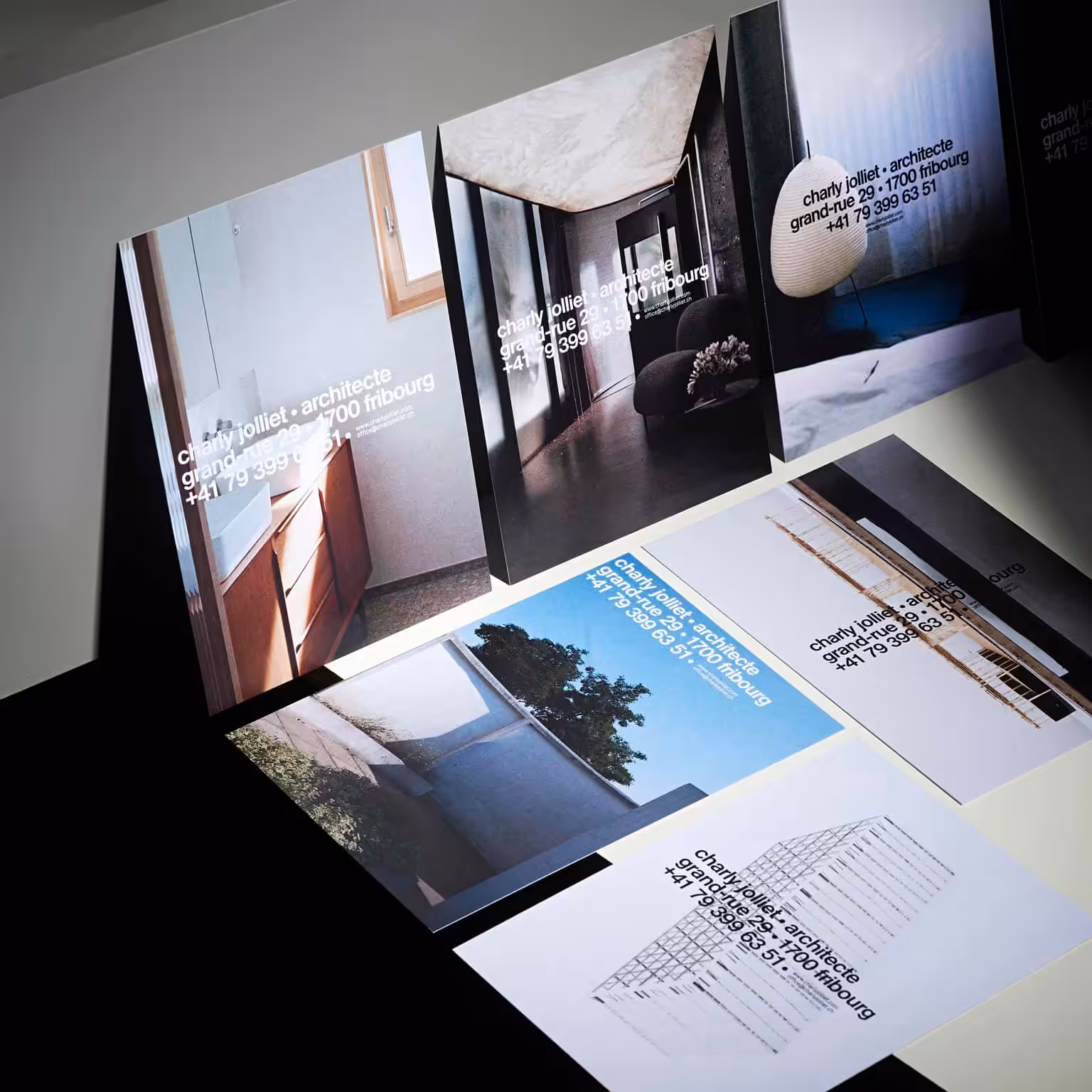 The new visual identity for Charly Jolliet Architecte, by Studio Maximilien Pellegrini the concept of the identity was to consider the typography as a module adapting to all the supports, declined in three versions the logo reads like an image highlighting the name, first name, profession, phone number and address of the client on a single line making no hierarchical difference.