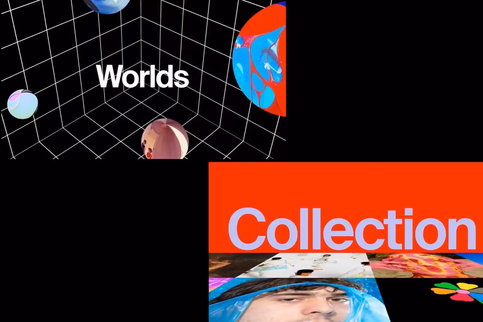 Drops is a service that explains how to launch a drop in Foundation. For the Drops animations, 3 audiovisual behaviours were developed – Stack, Shuffle, and Cluster– based on how the users of the platform can share the NFTS. Worlds is a service that allows anyone to coordinate with vendors, organise an exhibition on the chain and participate in sales based on the principles of the blockchain.