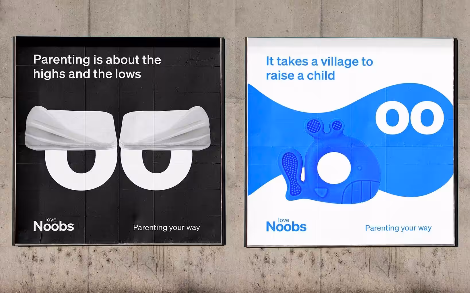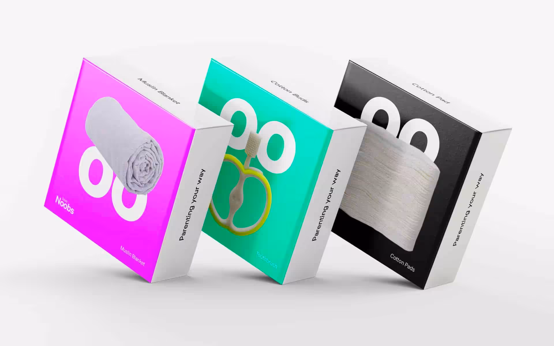 The visual identity was inspired by the double ‘oo’ within LoveNoobs, expressing the wide eyes of a newborn – and of everyone who is a “noobie” to parenting! Every product, its name, story and packaging, is designed to be genderless but characterful, and is presented as a tool to be used in whatever way is most helpful to a “Big Noob”, caring for a “Little Noob”.